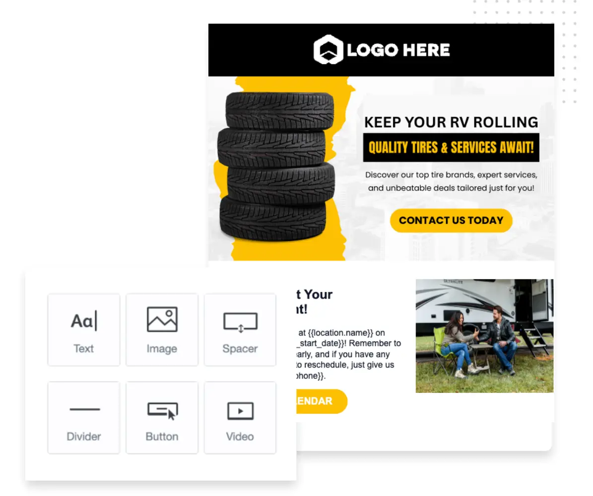 Stay connected with RV owners without spending hours writing emails. With RV Surge™, you can send one-time campaigns or set up automated journeys that keep your business top of mind year-round.