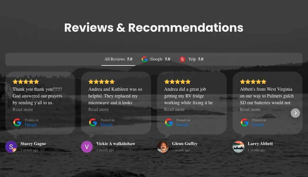 SEO, website, google or facebook ads, Google Business Profile, and reviews put you in front of RV owners.