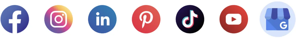 2Google Business Profile, Facebook, Instagram, Linkedin, Pinterest, YouTube, TikTok